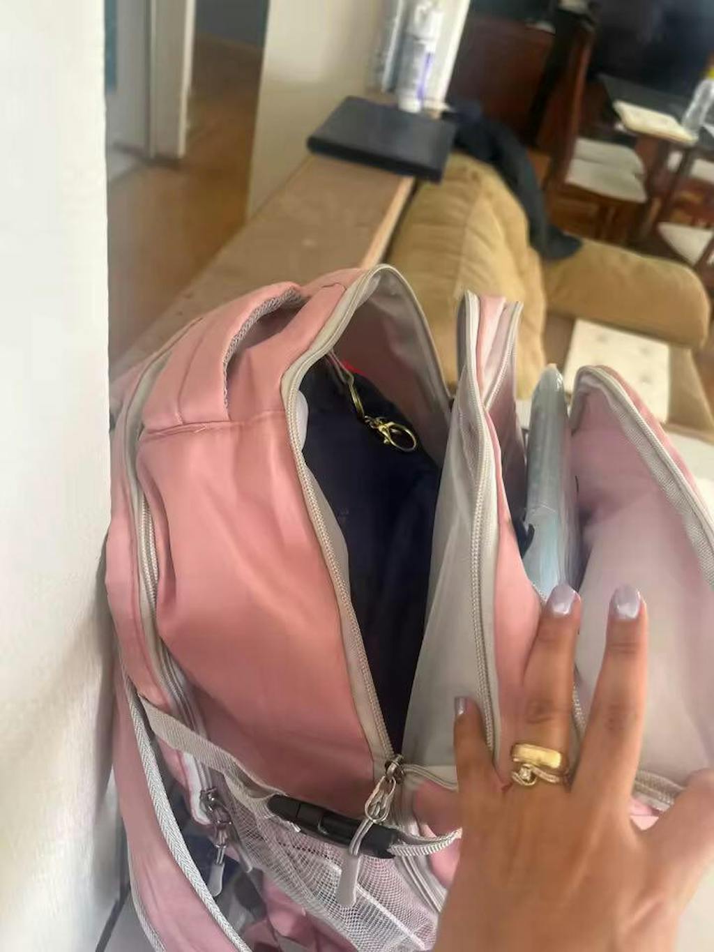 14 tasche, scomparto laptop da 15.6", scomparto scarpe separato e porta-borraccia.